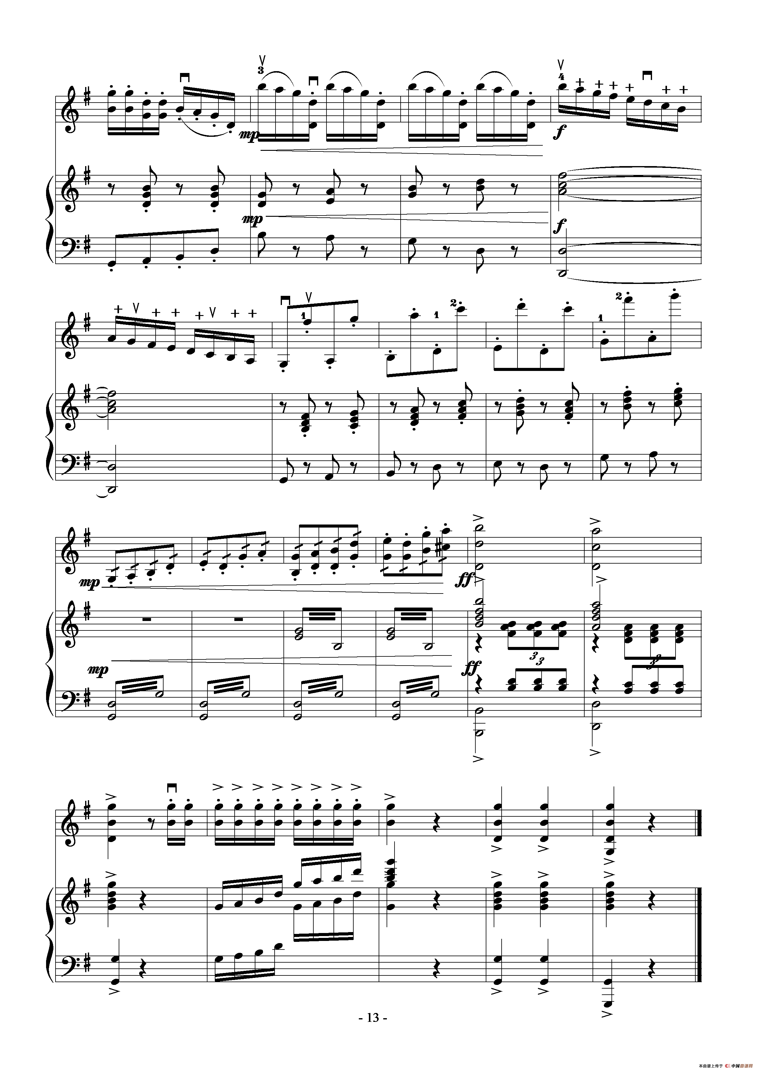 小提琴运弓手法训练提琴谱(No.13),小提琴运弓手法训练简谱"