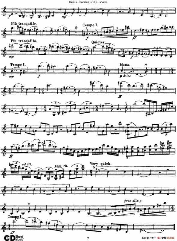 Delius Sonata提琴谱,Delius Sonata简谱"
