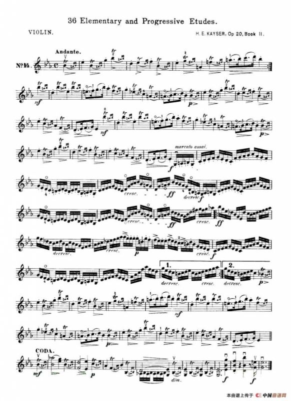 开塞(KAYSER 36首小提琴练习曲之13)提琴谱,简谱"