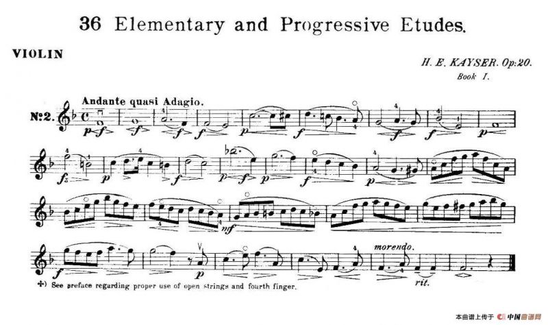 开塞(KAYSER 36首小提琴练习曲之1)提琴谱,简谱"