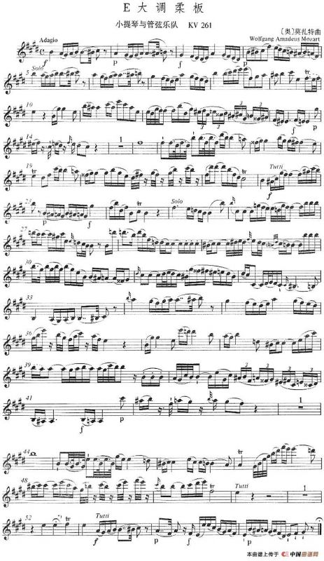E大调柔板提琴谱(小提琴+钢琴伴奏),E大调柔板简谱"