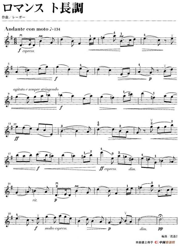 ロマンス ト長調提琴谱(D大调浪漫曲),ロマンス ト長調简谱"