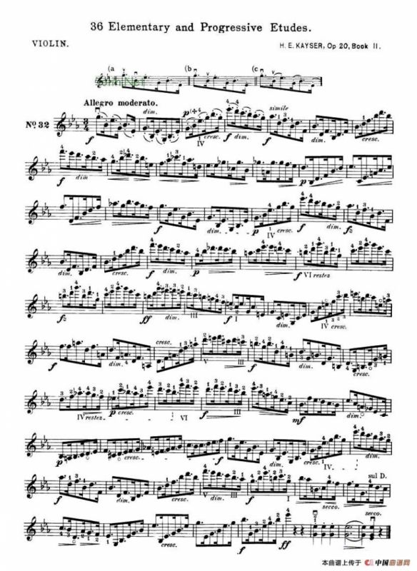 开塞(KAYSER 36首小提琴练习曲之32)提琴谱,简谱"