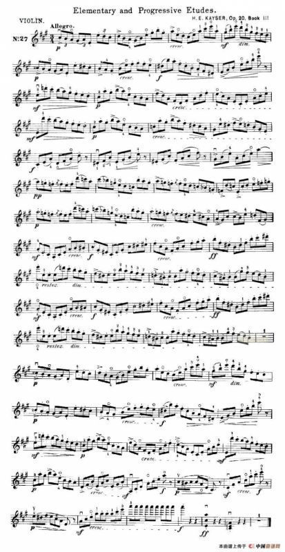 开塞(KAYSER 36首小提琴练习曲之27)提琴谱,简谱"