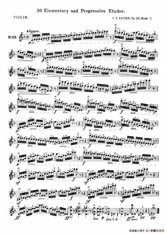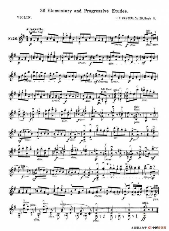 开塞(KAYSER 36首小提琴练习曲之20)提琴谱,简谱"