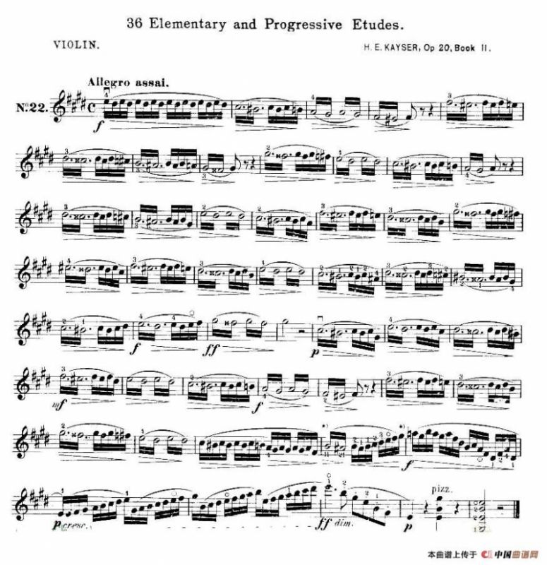开塞(KAYSER 36首小提琴练习曲之22)提琴谱,简谱"