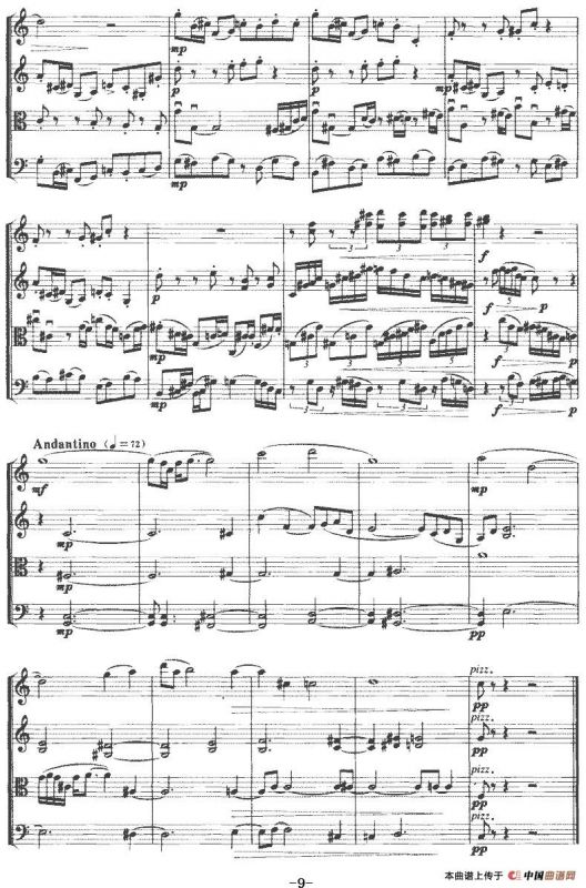 第一弦乐四重奏提琴谱(第三乐章、张朝作曲版),第一弦乐四重奏简谱"