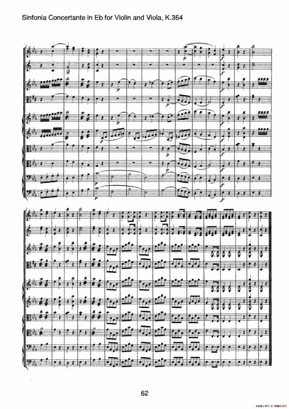 降E大调交响协奏曲(《Sinfonia Concertante in Eb》for Violin and Viola K.364)提琴谱,简谱"