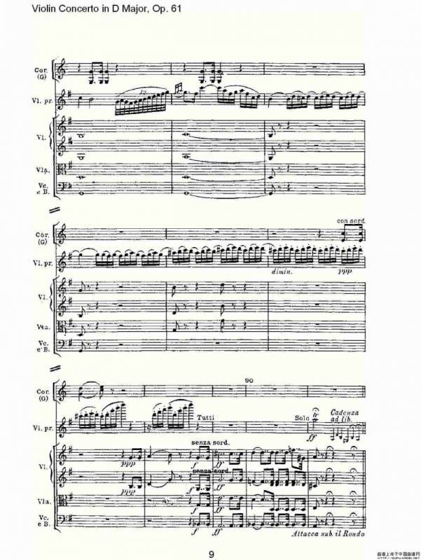 D大调小提琴协奏曲 Op.61第一乐章(一)提琴谱,简谱"