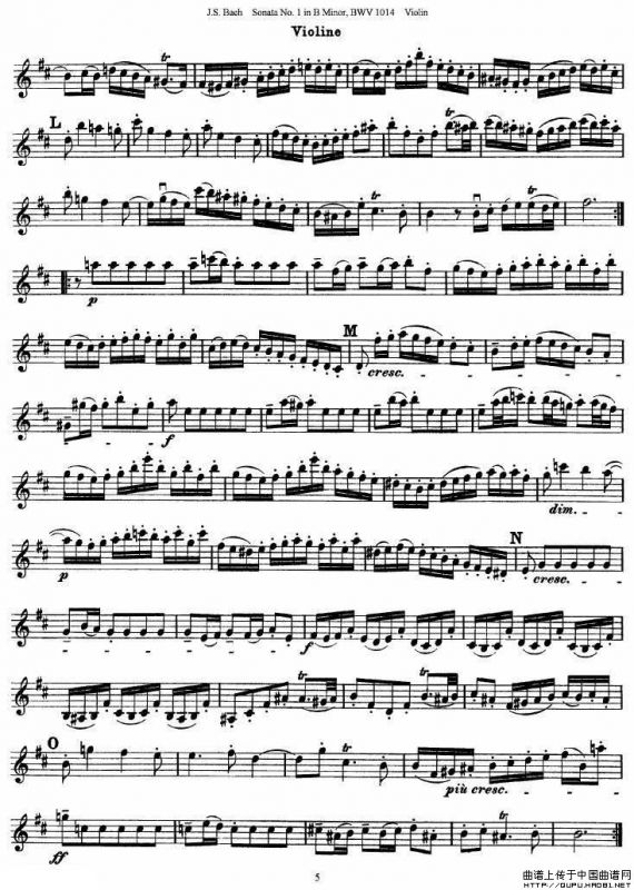 巴赫小提琴奏鸣曲No.1b小调(BWV 1014 [小提琴谱])提琴谱,简谱"