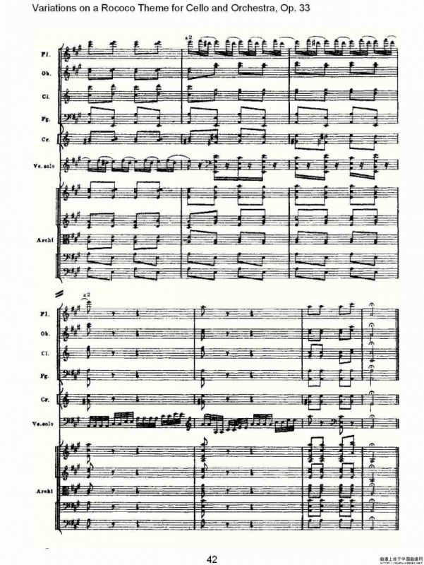 大提琴与管弦乐洛可可主题a小调变奏曲, Op.33(二)提琴谱,简谱"