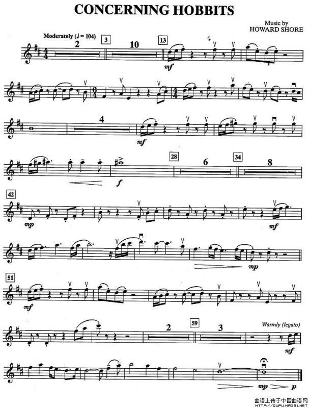 CONCERNING HOBBITS(魔戒)提琴谱,简谱"
