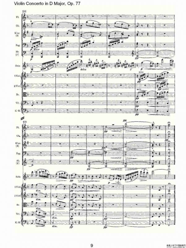 D大调小提琴协奏曲, Op.77第二乐章提琴谱,简谱"