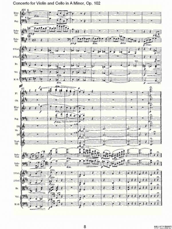 A小调小提琴与大提琴协奏曲, Op.102第一乐章提琴谱,简谱"