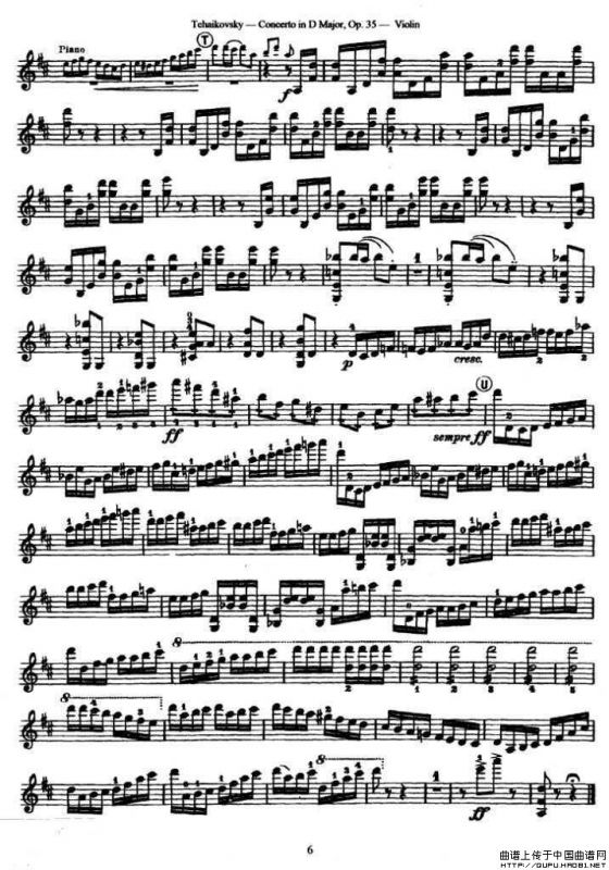 D大调小提琴协奏曲, Op.35第三乐章(二)提琴谱,简谱"
