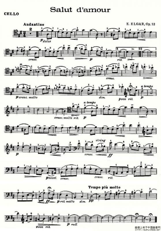 Salut damour(爱的礼赞)(大提琴)提琴谱,简谱"