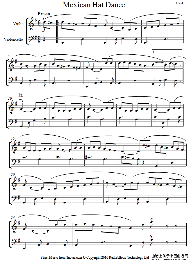 Mexican Hat Dance(墨西哥草帽舞))(大小提琴二重奏)提琴谱,简谱"