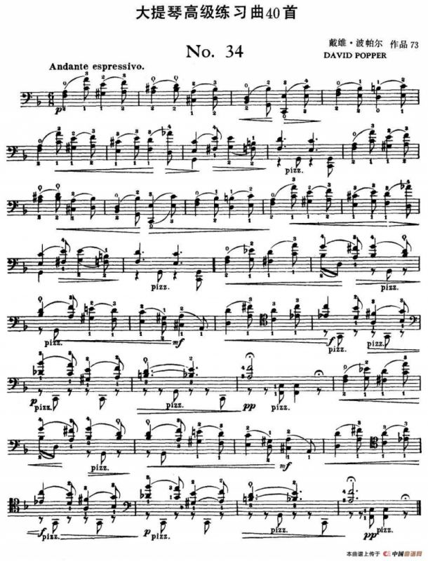 大提琴高级练习曲40首 No.34提琴谱,简谱"