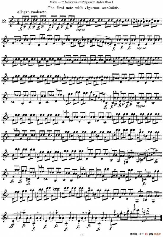 马扎斯小提琴练习曲 Op.36 第一册 特殊练习曲(13)提琴谱,简谱"