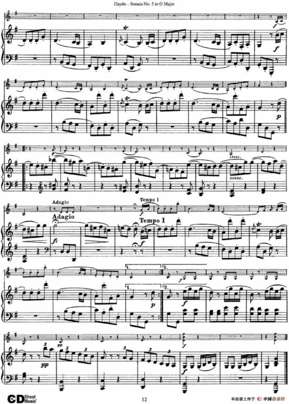 Violin Sonata No.5 in G Major(小提琴+钢琴伴奏)提琴谱,简谱"