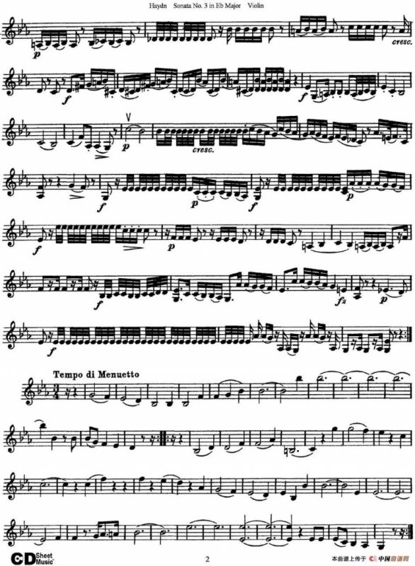 Violin Sonata No.3 in Eb Major提琴谱,简谱"