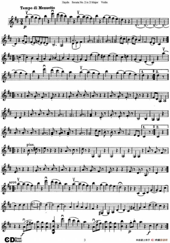 Violin Sonata No.2 in D Major(小提琴+钢琴伴奏)提琴谱,简谱"