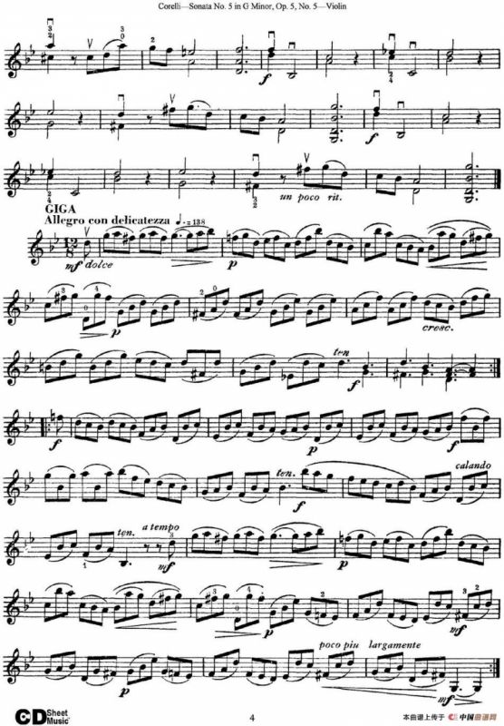 Sonata No.4 in F MajorOp.5 No.4提琴谱,简谱"