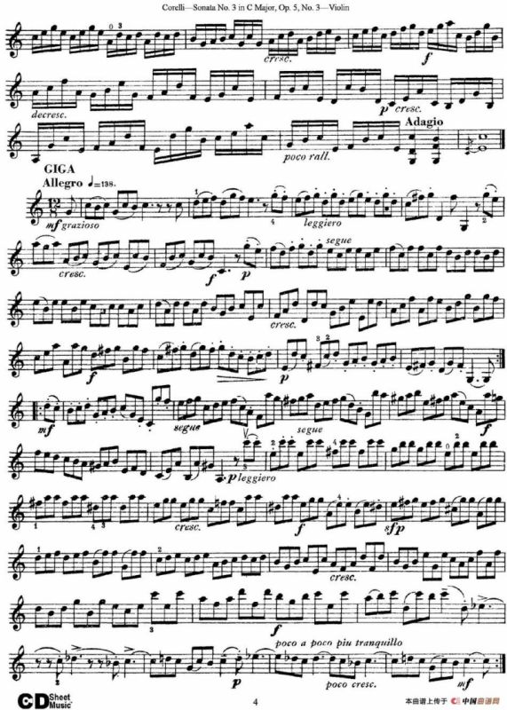 Sonata No.3 in C MajorOp.5 No.3提琴谱,简谱"