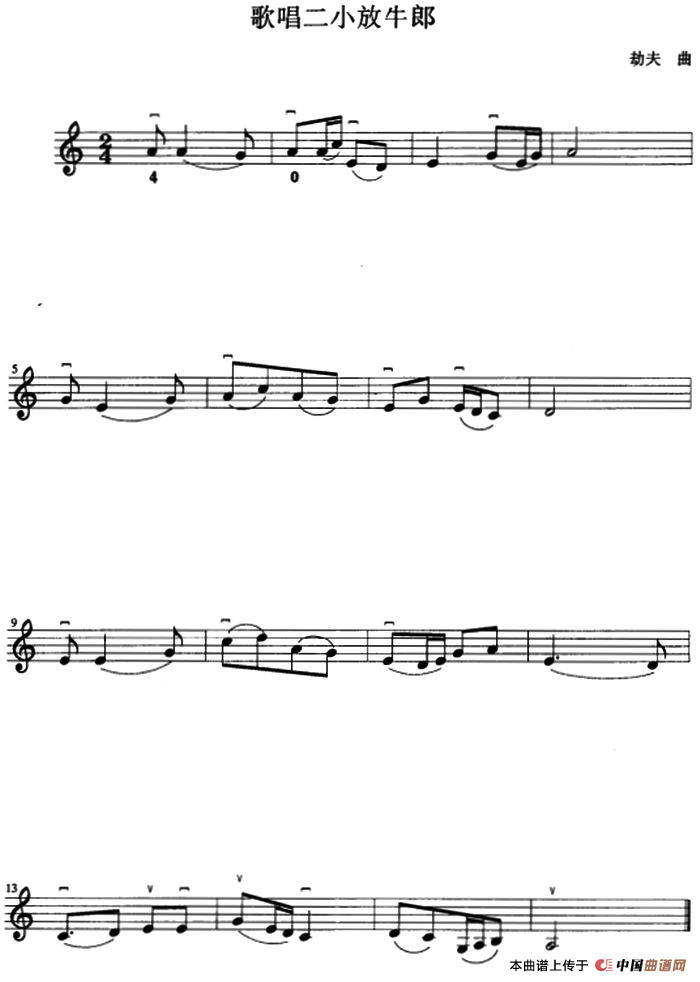 歌唱二小放牛郎提琴谱,歌唱二小放牛郎简谱"