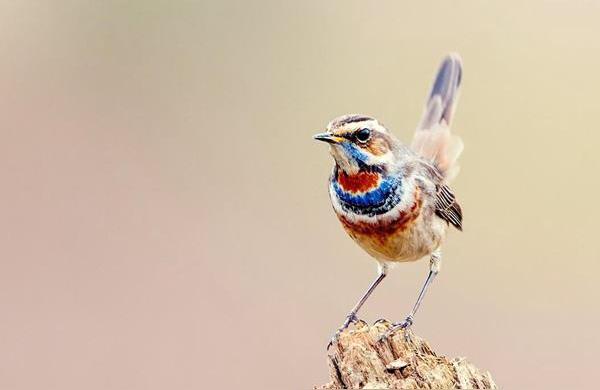 蓝脖鸟的体形是较小的,在颈部上有蓝色的羽毛,上体主要是呈土褐色,雌雄蓝点颏外形十分相似,很难区分性别。主要是在于灌丛或芦苇丛中活动,是一种习性比较隐怯的鸟类。野生环境下的蓝脖乌主要是各种昆虫为食,比如蝗虫、金龟甲等,植物种子也是它们的食物。人工饲养的条件下可以准备多元化的食物。