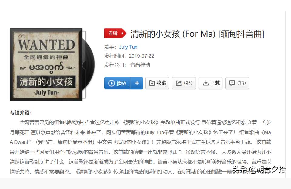 3.《清新的小女孩》这是一首缅甸歌曲,2019年7月22日在我国发行,目前在抖音上点击率已经过亿。