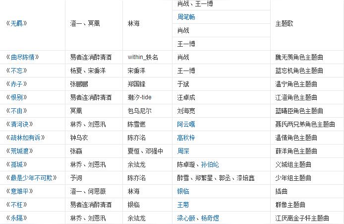 《无羁》由澄一喝冥凰作词,林海谱曲编曲,肖战和王一博演唱,是电视剧《陈情令》的主题曲。