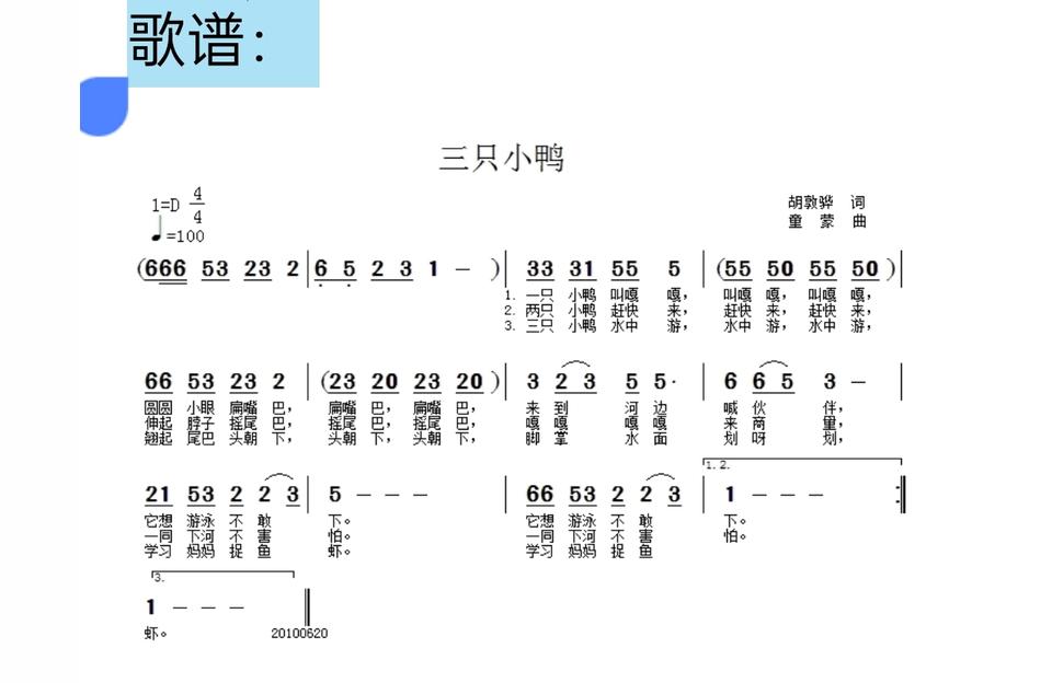 《小鸭子》为著名作曲家潘振声的儿歌作品。