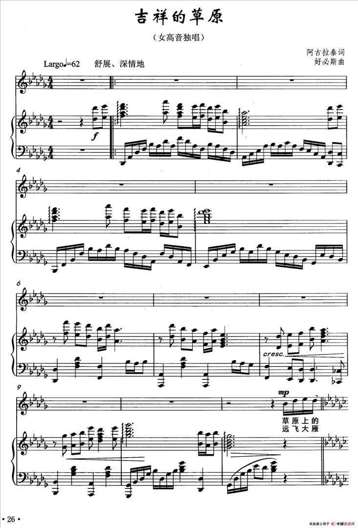 我爱祖国青青的草原,金色的沙漠。